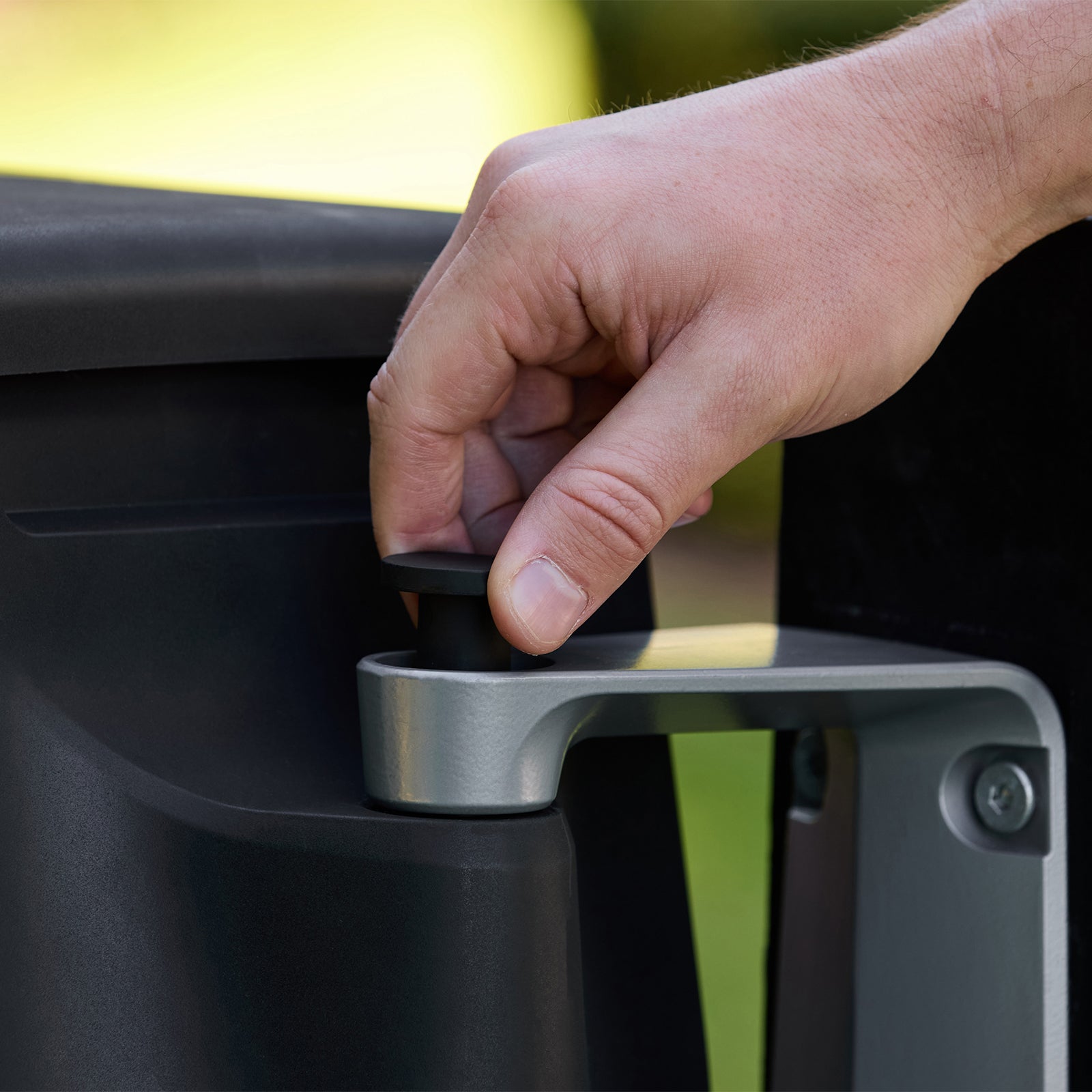Slim, sleek, and architectural in style, it’s built to enhance your outdoor space, not clutter it. A discreet storage compartment keeps your fittings and accessories neatly tucked away, while the compact design fits seamlessly into any outdoor space.