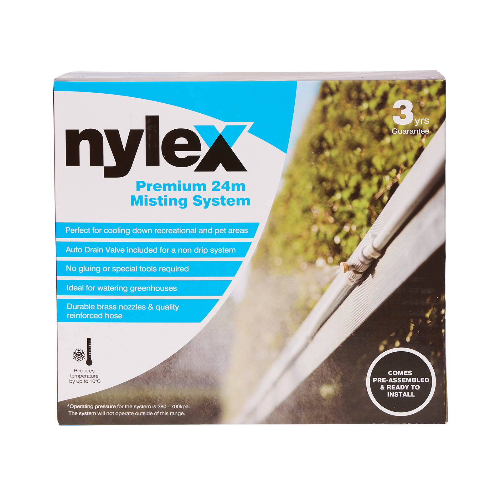 The Nylex Premium 24m Misting System can reduce surrounding temperatures by up to 10° keeping your outdoor entertainment space cool and refreshing, no matter how hot it gets.