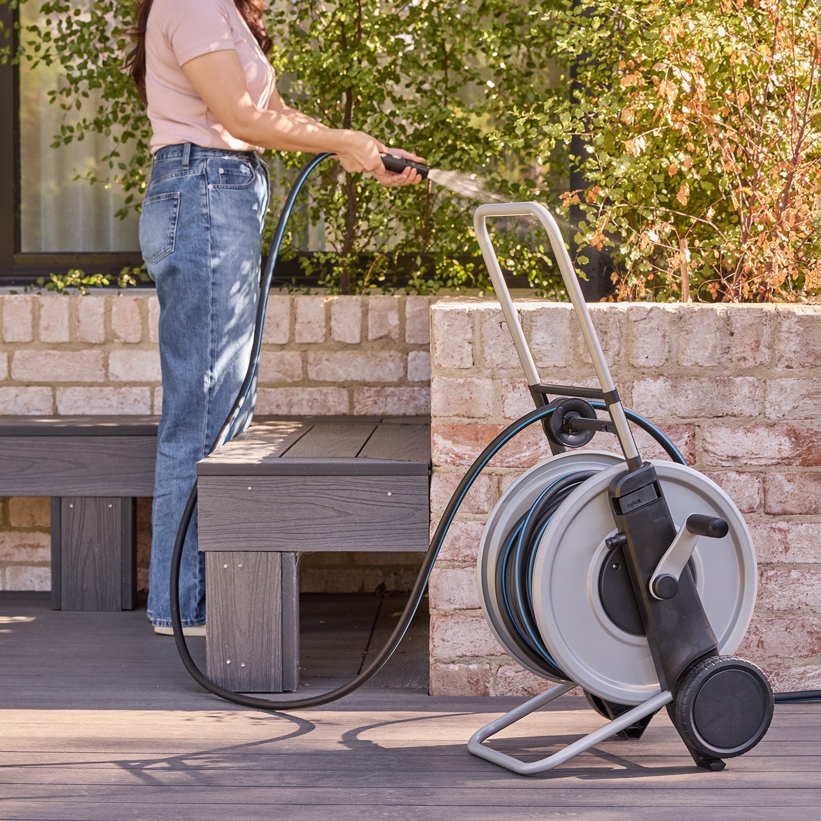 Holding up to 50m of hose, the telescopic handle retracts neatly for easy storage in tight spaces. A built-in hose guide keeps winding smooth and tangle-free, so everything packs away clean and compact.