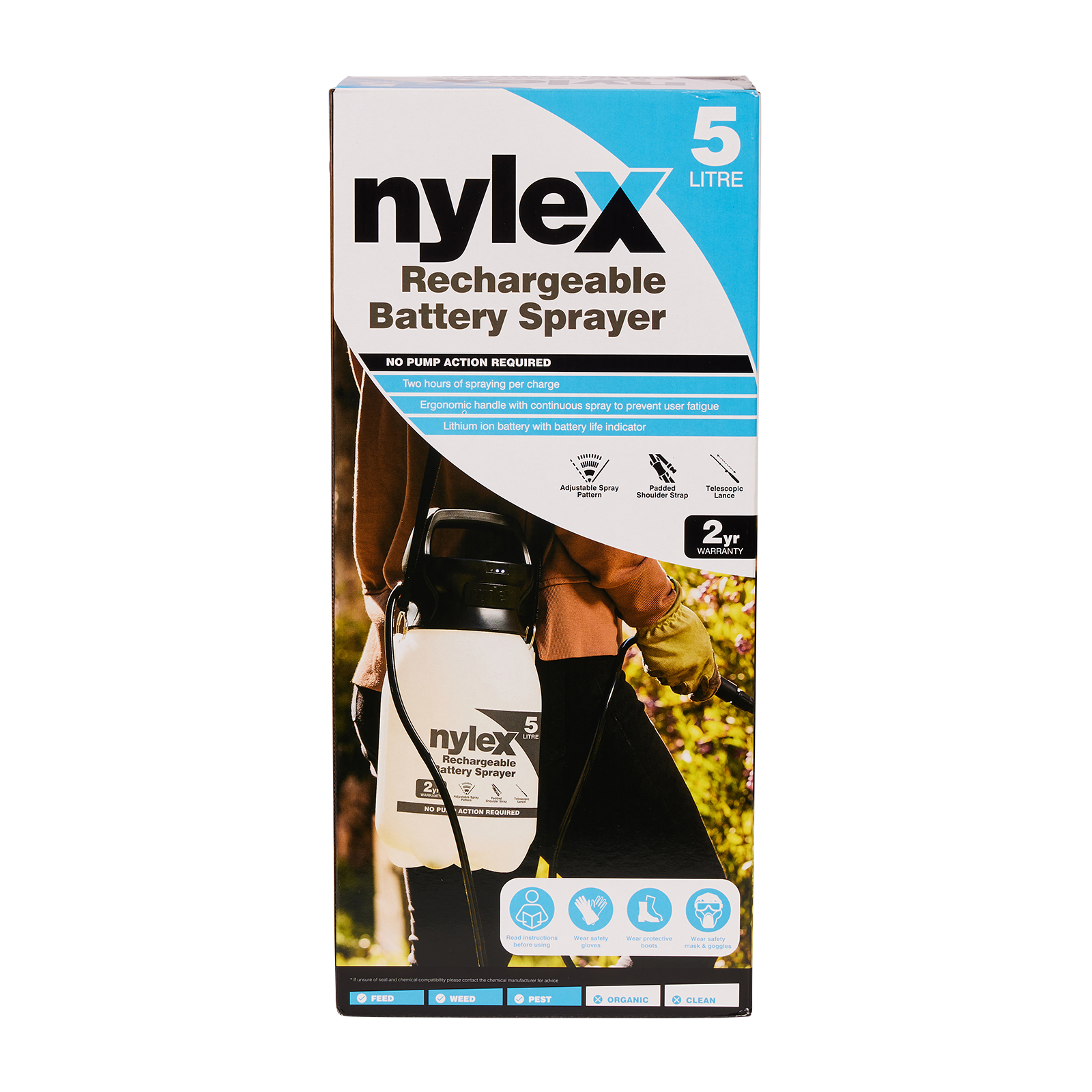 The Nylex 5-litre Rechargeable Battery Shoulder Sprayer provides an easy and effective solution for applying water and water-soluble products outdoors or around the home.
