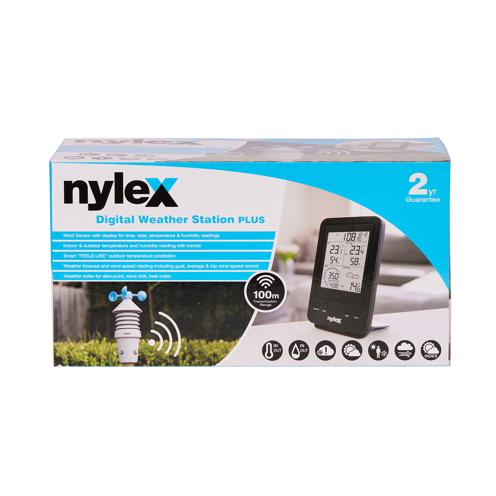 The Nylex Digital Weather Station Plus monitors and records the indoor and outdoor temperature, humidity records, and wind speed at timed and dated intervals. This unit has a unique feature of a ‘feels like’ function; measured using outside temperature and wind speed which factors in the wind chill to give a ‘feels like’ temperature reading.